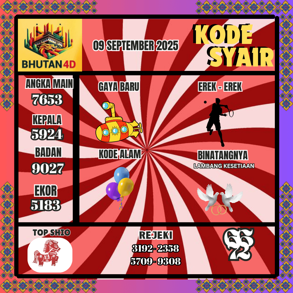 Kode Syair Bhutan4D Pools 09 September 2025