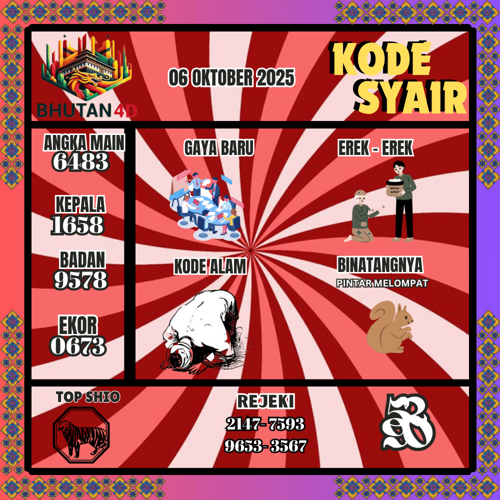 Kode Syair Bhutan4D Pools 06 Oktober 2025
