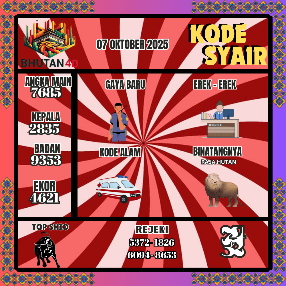 Kode Syair Bhutan4D Pools 07 Oktober 2025