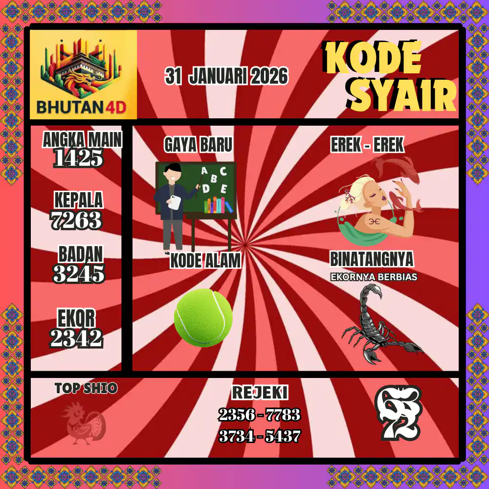 Kode Syair Bhutan4D Pools 31 Januari 2026