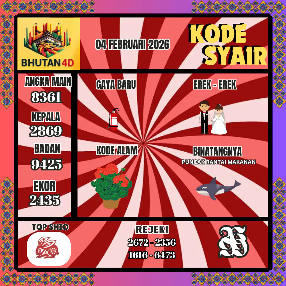 Kode Syair Bhutan4D Pools 04 Februari 2026