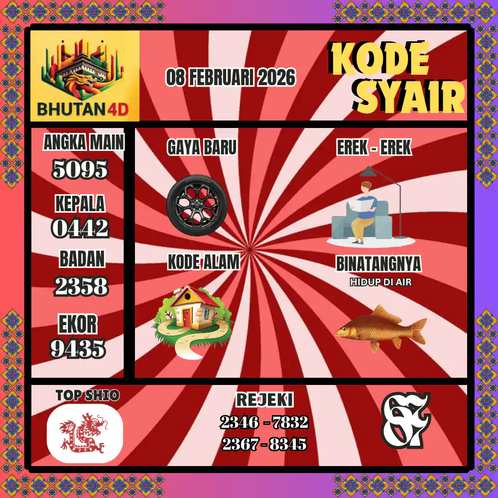 Kode Syair Bhutan4D Pools 08 Februari 2026
