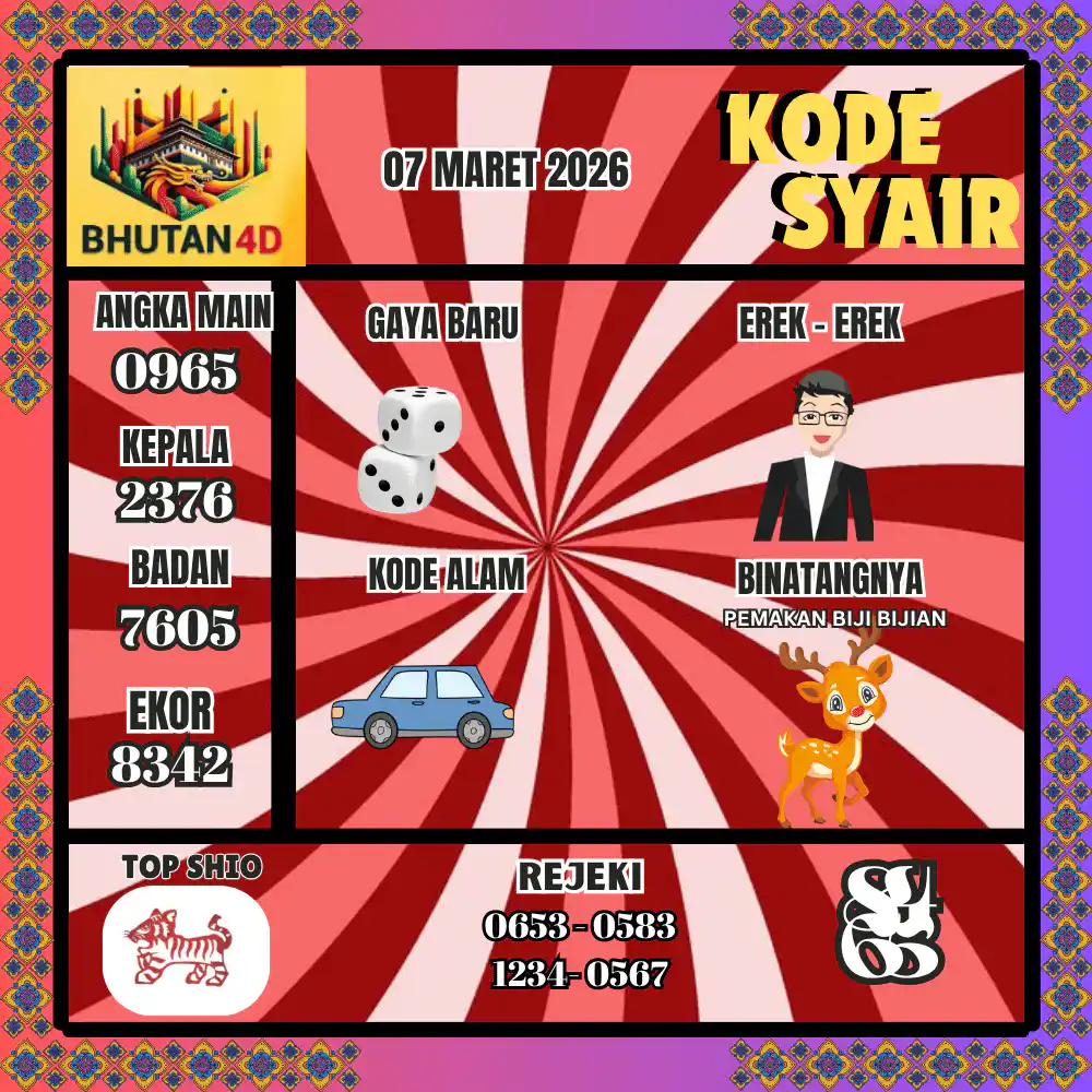 Kode Syair Bhutan4D Pools 07 Maret 2026