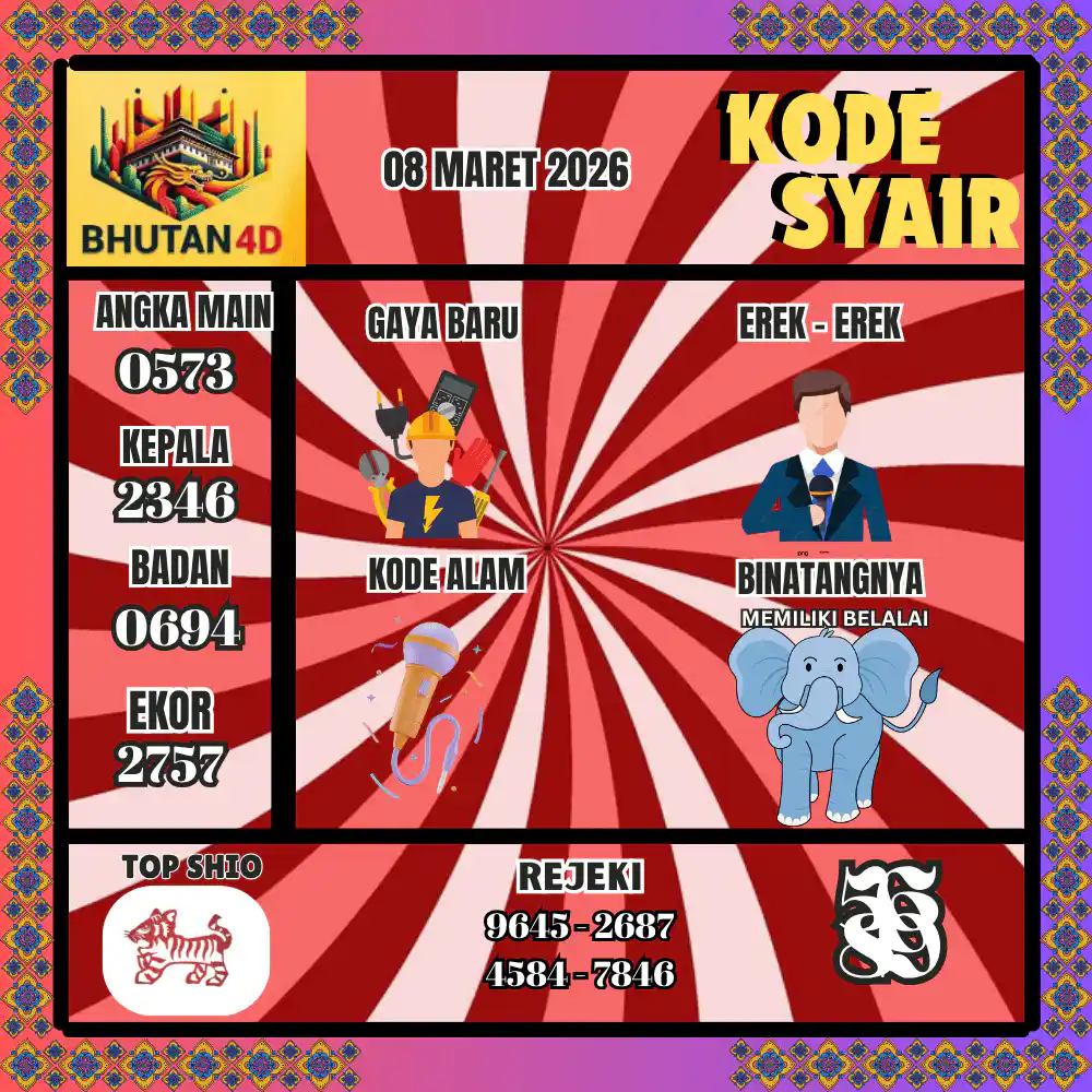 Kode Syair Bhutan4D Pools 08 Maret 2026