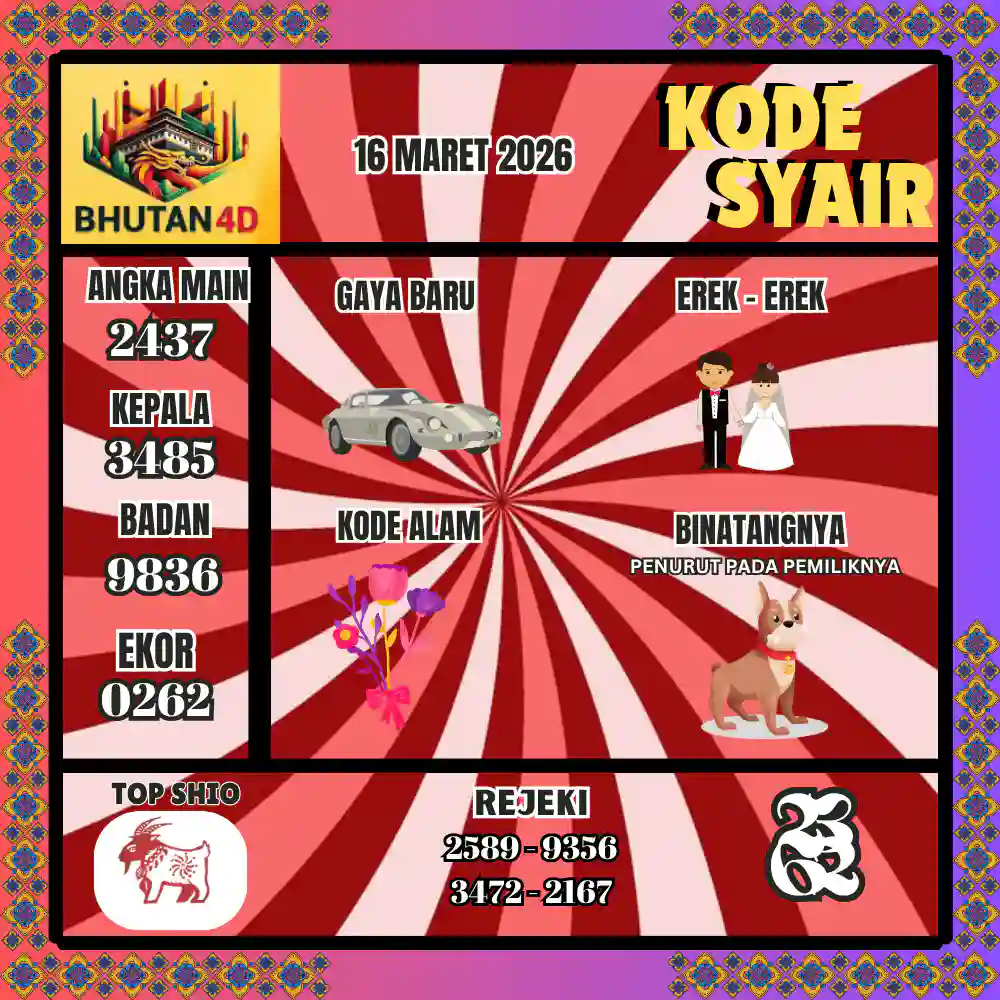 Kode Syair Bhutan4D Pools 16 Maret 2026