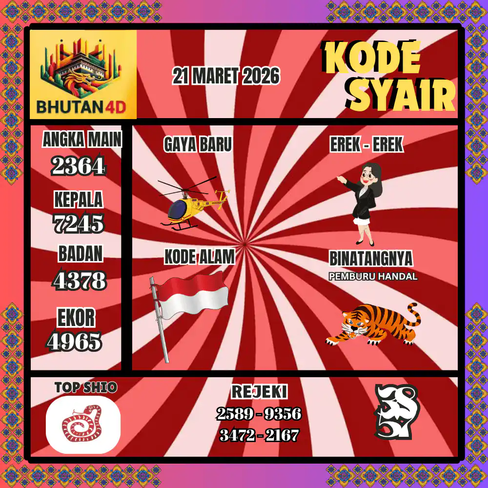 Kode Syair Bhutan4D Pools 21 Maret 2026