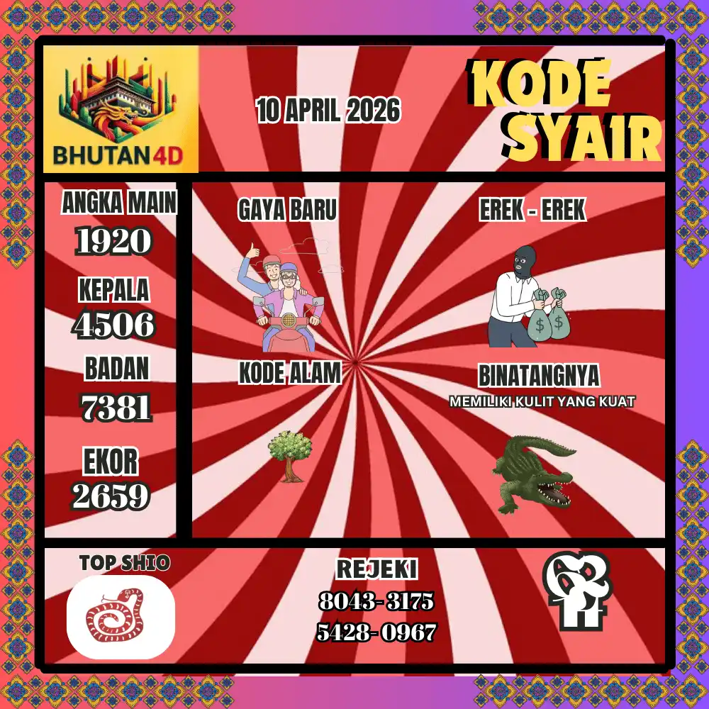 Kode Syair Bhutan4D Pools 10 April 2026