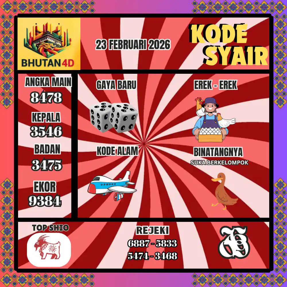 Kode Syair Bhutan4D Pools 23 Februari 2026